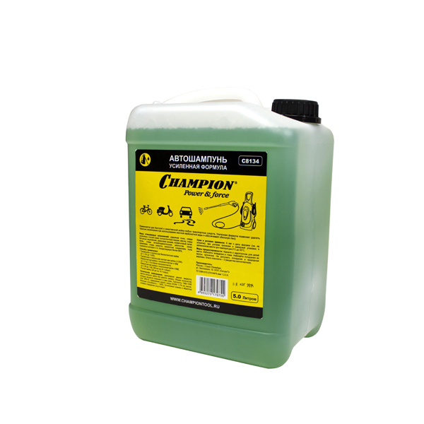 Главная / Аксессуары / Принадлежности к мойкам / Автошампунь CHAMPION усиленная формула 5л, С8134