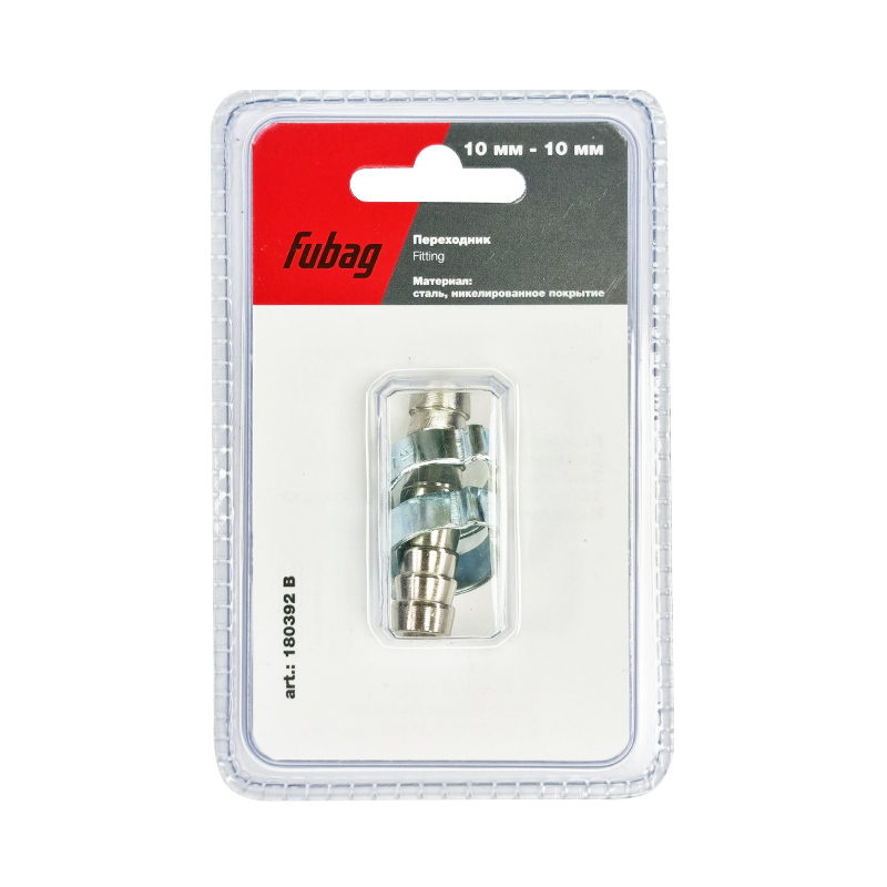 FUBAG Переходник 10мм елочка на елочку с 2- мя обжимными кольцами 10х15мм, блистер 1 шт