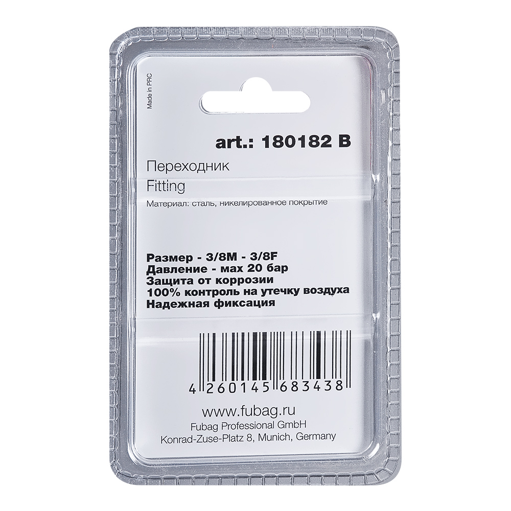 Переходник предназначен для соединения выхода компрессора со шлангом пневмоинструмента. Переход резьбы: внешняя 3/8″(папа) — внутренняя 3/8″ (мама). Поставляется в блистере.