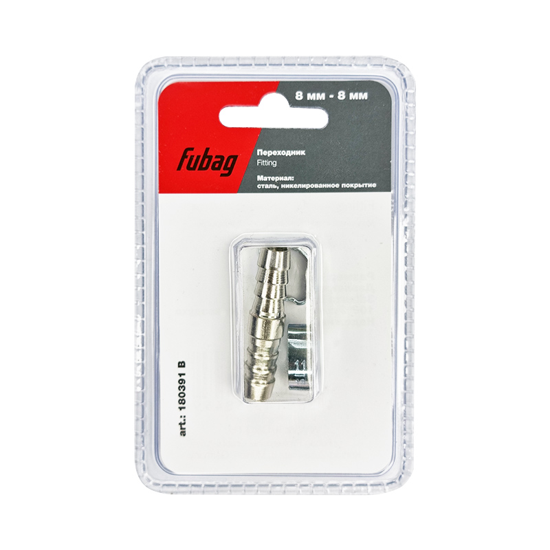 FUBAG Переходник 8мм елочка на елочку с 2- мя обжимными кольцами 8х13мм, блистер 1 шт