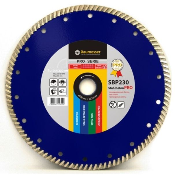 Круг алмазный 1A1R Turbo 230x2,6x9x22,23 Baumesser Stahlbeton PRO
