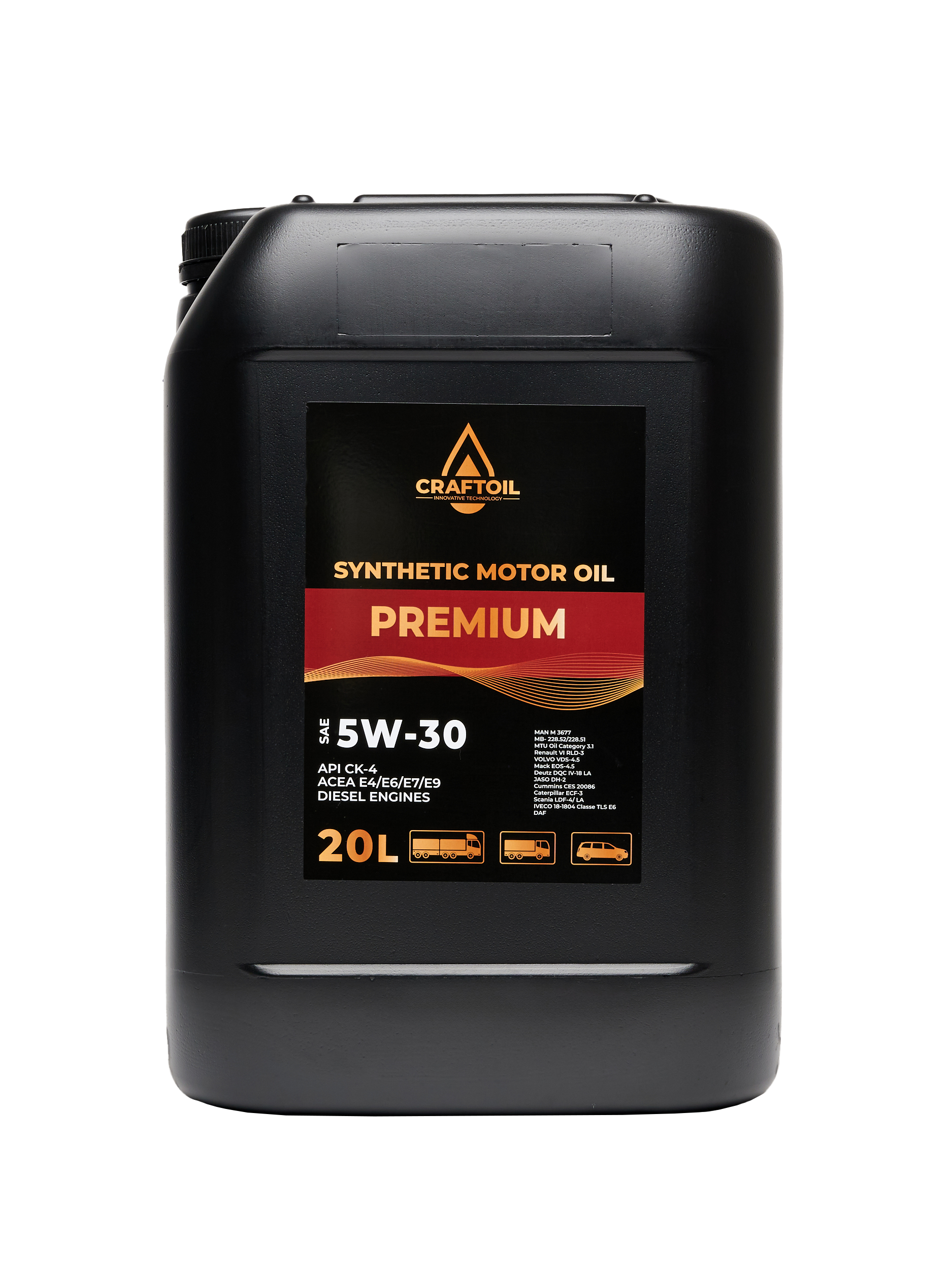 Синтетическое всесезонное моторное масло разработано для использования в тяжелонагруженных дизельных двигателях, в том числе — с турбонаддувом. Craftoil Premium Diesel произведено на основе синтетических базовых масел и эффективного пакета присадок.