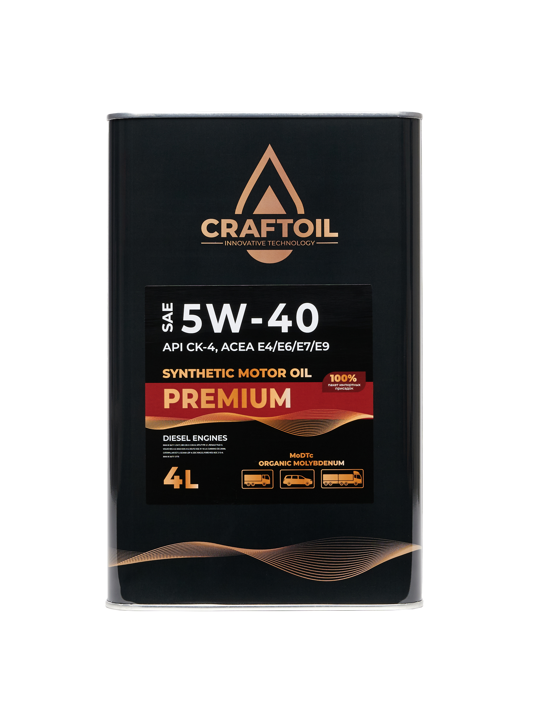Синтетическое всесезонное моторное масло разработано для использования в тяжелонагруженных дизельных двигателях, в том числе — с турбонаддувом. Craftoil Premium Diesel произведено на основе синтетических базовых масел и эффективного пакета присадок.