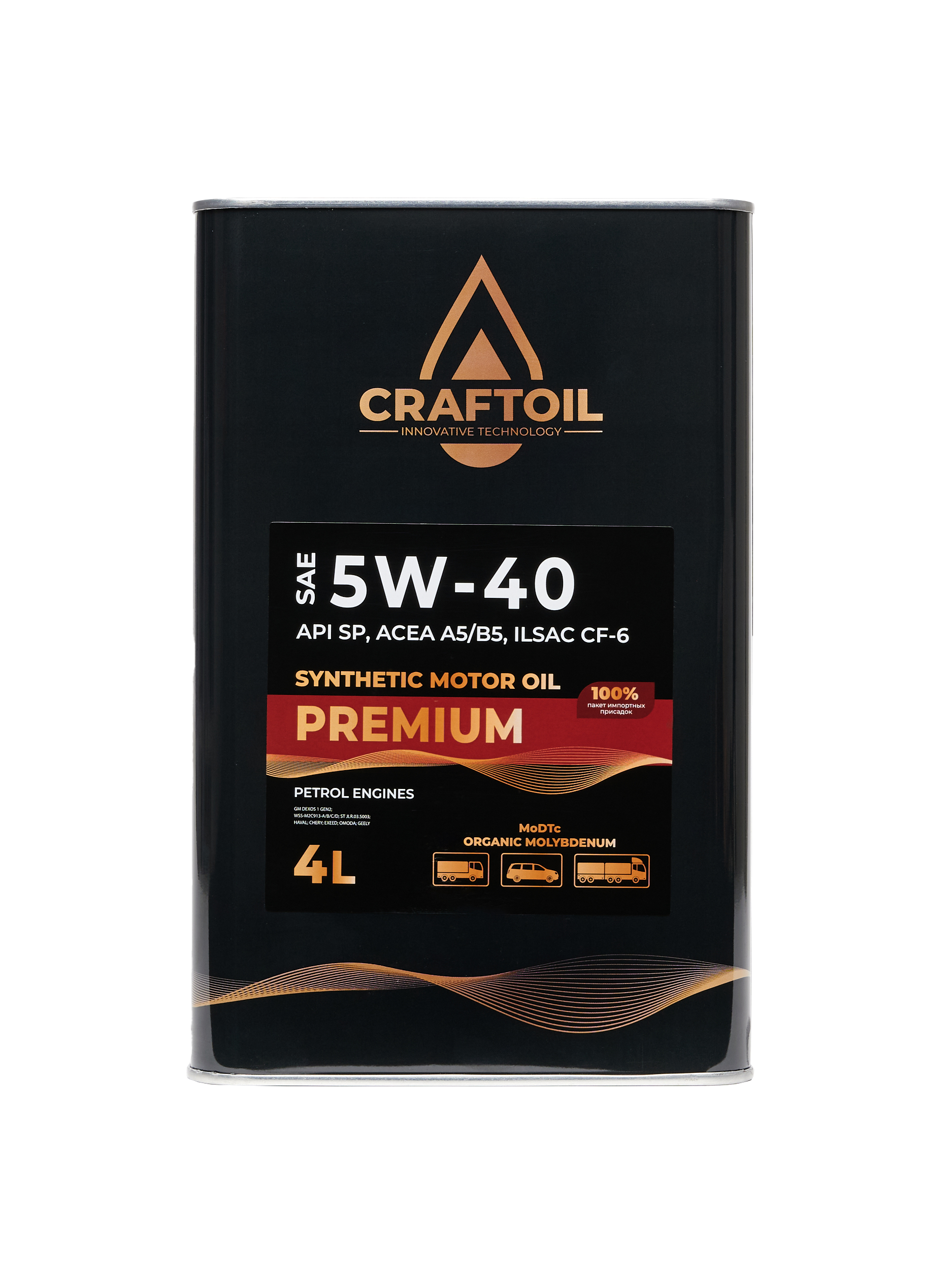 Применение: Масла отвечают гарантийным требованиям для новых автомобиле североамериканского и европейского производства, в которых рекомендуется использовать допуски API SP. Craftoil Premium API SP полностью совместимы с маслами всех предыдущих категорий API SN, SN PLUS, ILSAC GF-6