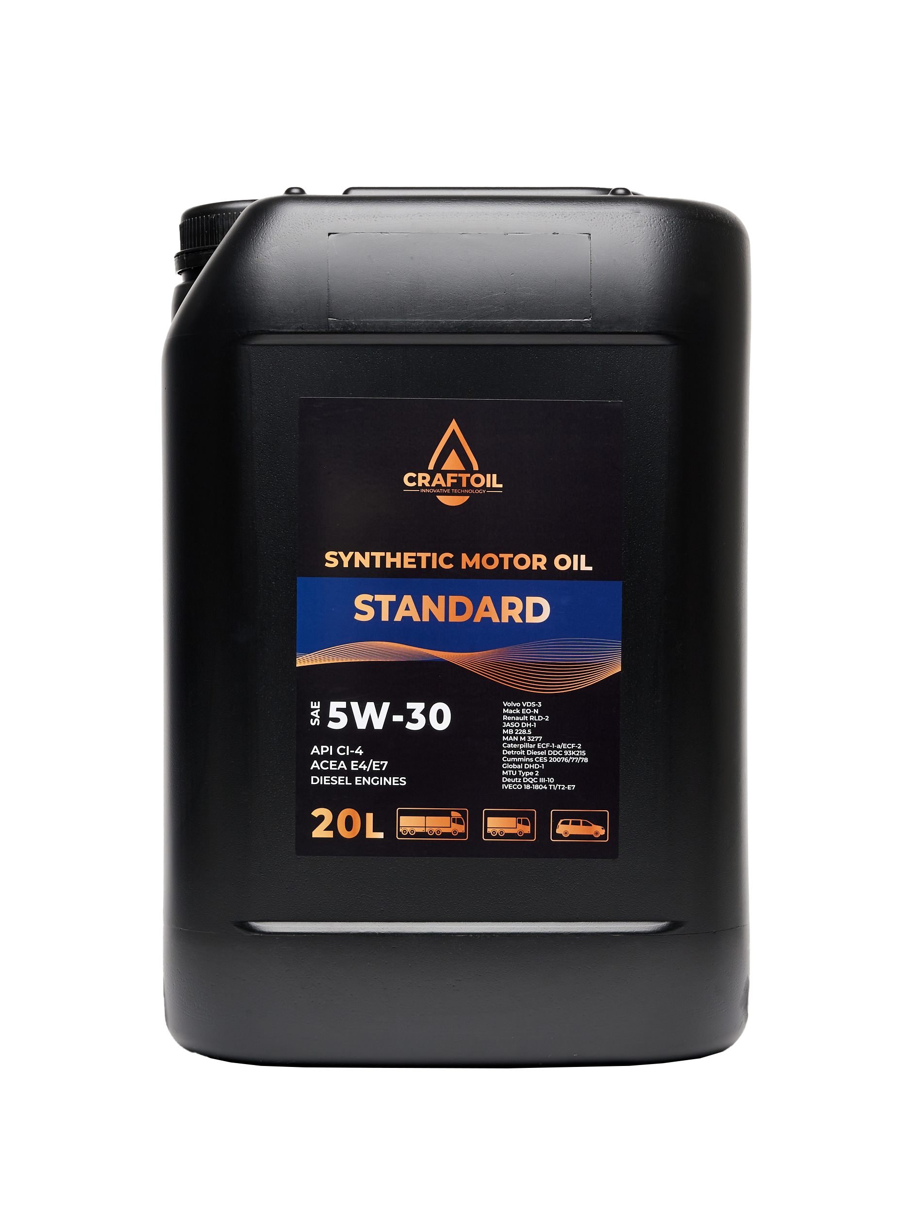Синтетическое всесезонное моторное масло разработано для использования в тяжелонагруженных дизельных двигателях, в том числе — с турбонаддувом. Craftoil Standart Diesel произведено на основе синтетических и минеральных базовых масел и эффективного пакета присадок.