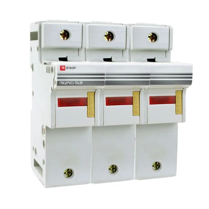 Главная / Автоматические выключатели, УЗО, дифавтоматы / Выключатели нагрузки, рубильники, разъединители, предохранители / Предохранитель-разъединитель для ПВЦ 10×38 3P (с индикацией) EKF PROxima
