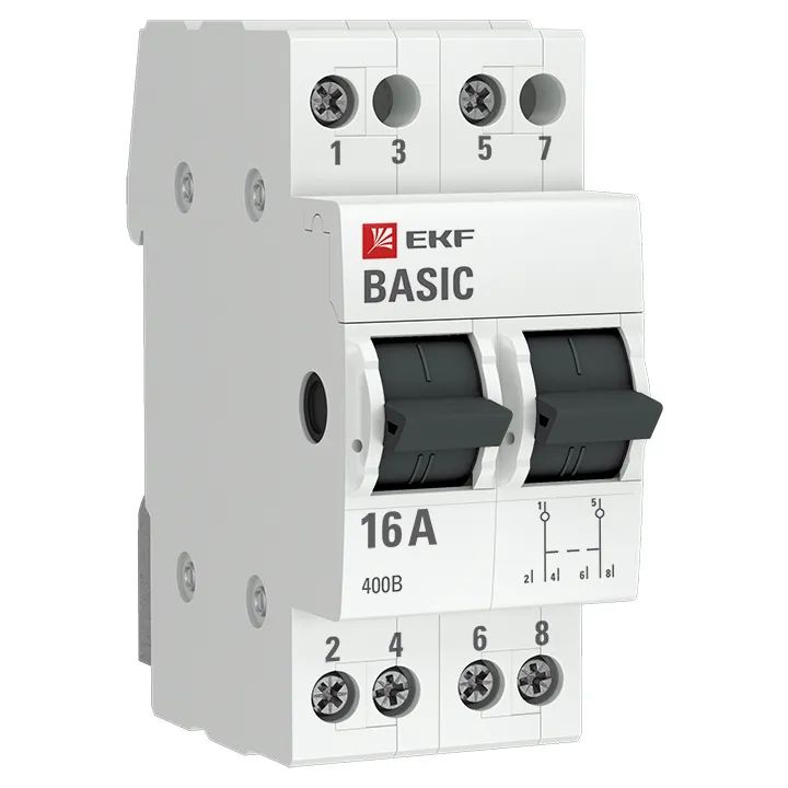 Главная / Автоматические выключатели, УЗО, дифавтоматы / Выключатели нагрузки, рубильники, разъединители, предохранители / Трехпозиционный переключатель 2P 16А EKF Basic