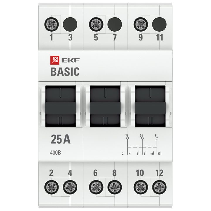Главная / Автоматические выключатели, УЗО, дифавтоматы / Выключатели нагрузки, рубильники, разъединители, предохранители / Трехпозиционный переключатель 3P 25А EKF Basic