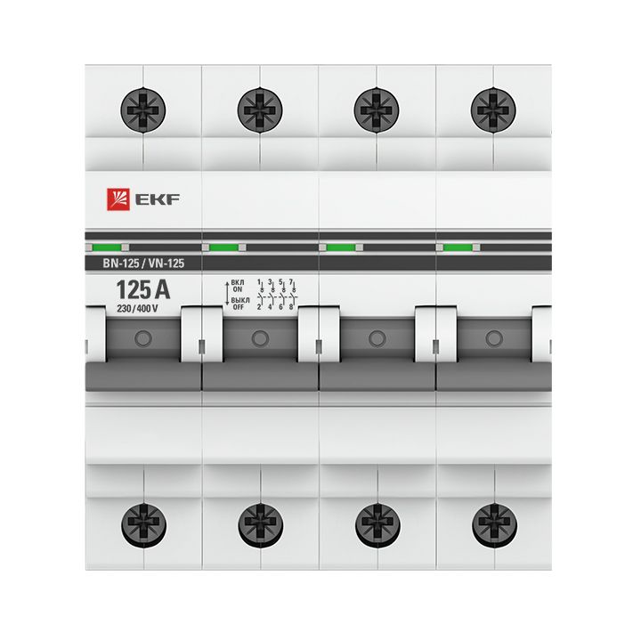 Главная / Автоматические выключатели, УЗО, дифавтоматы / Выключатели нагрузки, рубильники, разъединители, предохранители / Выключатель нагрузки 4P 125А ВН-125 EKF PROxima