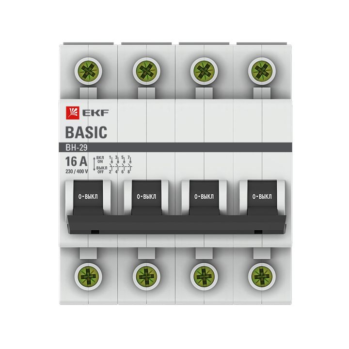 Главная / Автоматические выключатели, УЗО, дифавтоматы / Выключатели нагрузки, рубильники, разъединители, предохранители / Выключатель нагрузки 4P 16А ВН-29 EKF Basic