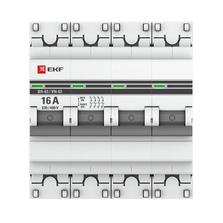Главная / Автоматические выключатели, УЗО, дифавтоматы / Выключатели нагрузки, рубильники, разъединители, предохранители / Выключатель нагрузки 4P 16А ВН-63 EKF PROxima