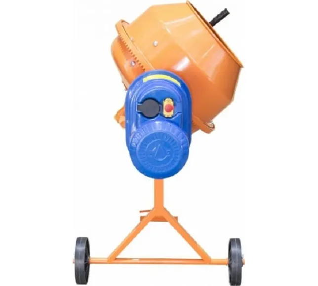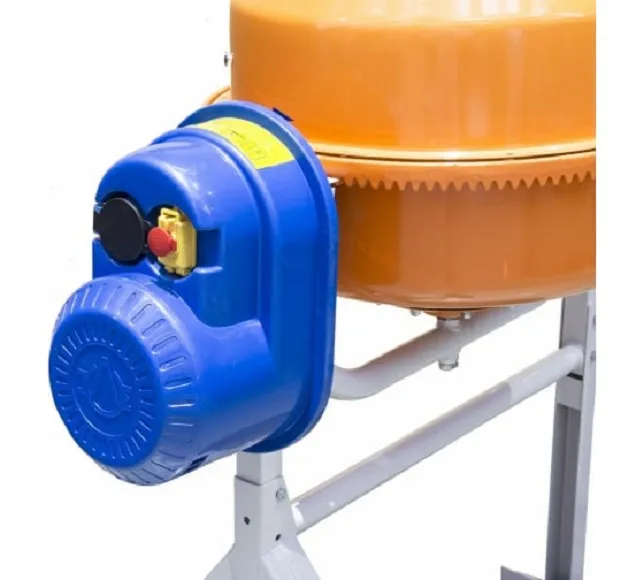 Электродвигатель асинхронный, имеет встроенную термозащиту, что позволяет ему работать без перегрева. Двигатель оснащен защитным кожухом. Бетономешалка работает от сети 209–242 В с частотой 50 ±1,25 Гц. Сетевой кабель не встроен, что дает возможность легко его заменить при необходимости.
