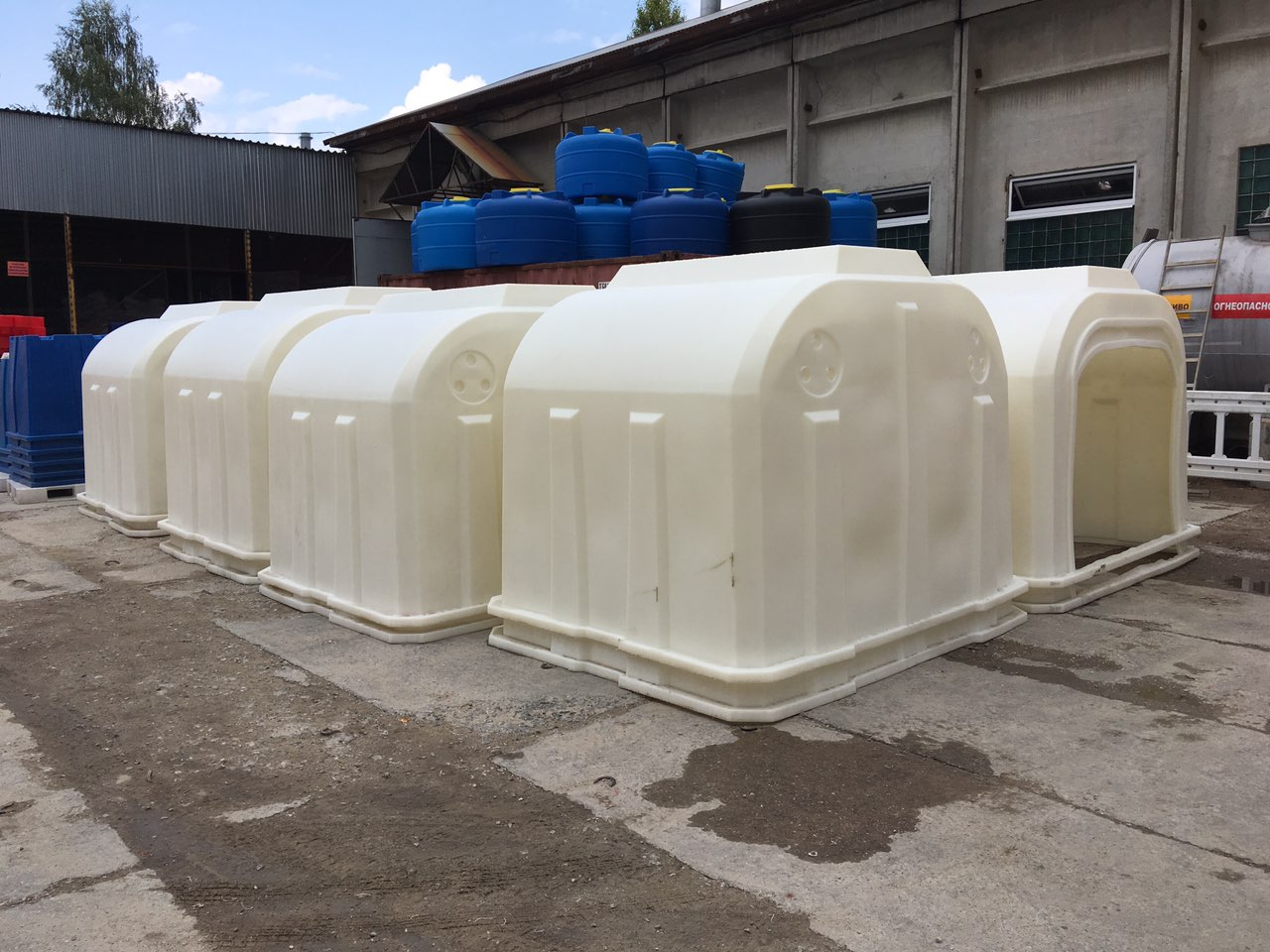 Групповой домик для содержания телят — абсолютно новое изделие на российсом рынке. Благодаря продуманной конструкции и большим размерам, в таком домике может одновременно содержаться до 8 телят возрастом от 14 дней до 5 месяцев. Использование сырья высшего качества и современные технологии производства позволили выпустить на рынок РФ принципиально новый продукт для сельского хозяйства и животноводства. Групповой домик для телят имеет увеличенный вход, который может быть снабжен шторками из специального материала. В задней части предусмотрена возможность установки двух вентиляционных поворотных крышек, либо специальной дверцы для обслуживания. Боковые ребра жесткости и массивный порог в нижней части эффективно противодействуют деформациям.