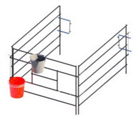Вольер монтируется к пластиковому домику для телят, позволяя ограничить пространство выгула. Вольеры могут сдвигаться, либо закидываться вверх для обслуживания площадки.