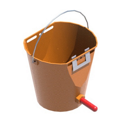 Ведро имеет пазы для крепления на металлическую вилку. Материал изготовления — высокопрочный пищевой полиэтилен.