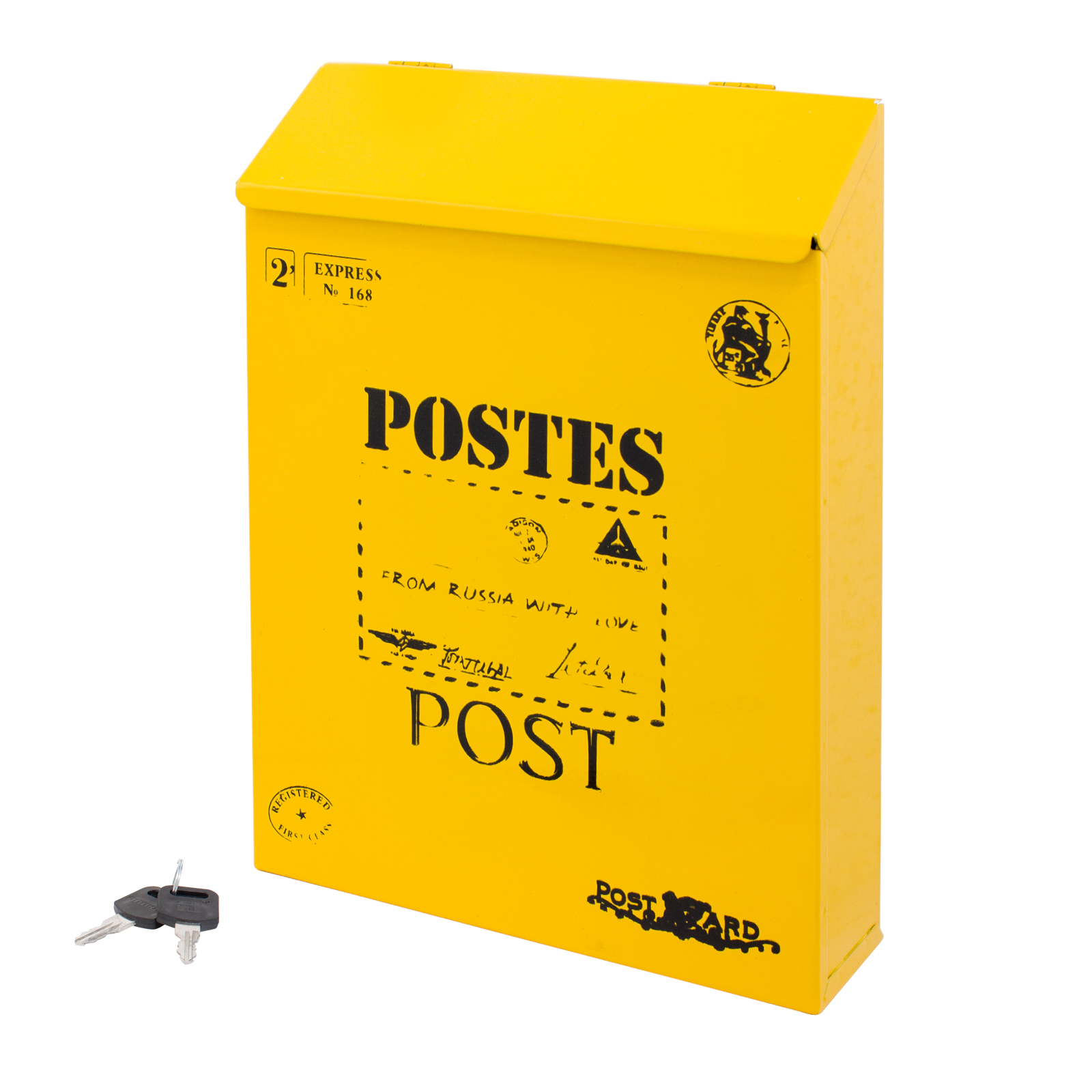 Ящик почтовый индивидуальный. Материал — сталь. Цвет — желтый. Размеры — 220*290*65мм. Замок с 2 ключами.