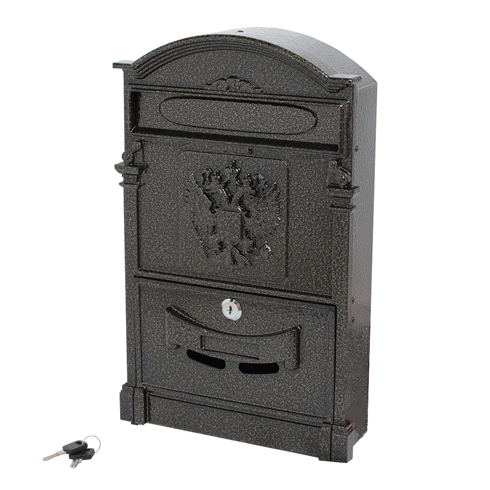 Ящик почтовый индивидуальный. Материал — сталь, алюминий. Цвет — бронза. Размеры — 405*255*75мм. Замок с 2 ключами.