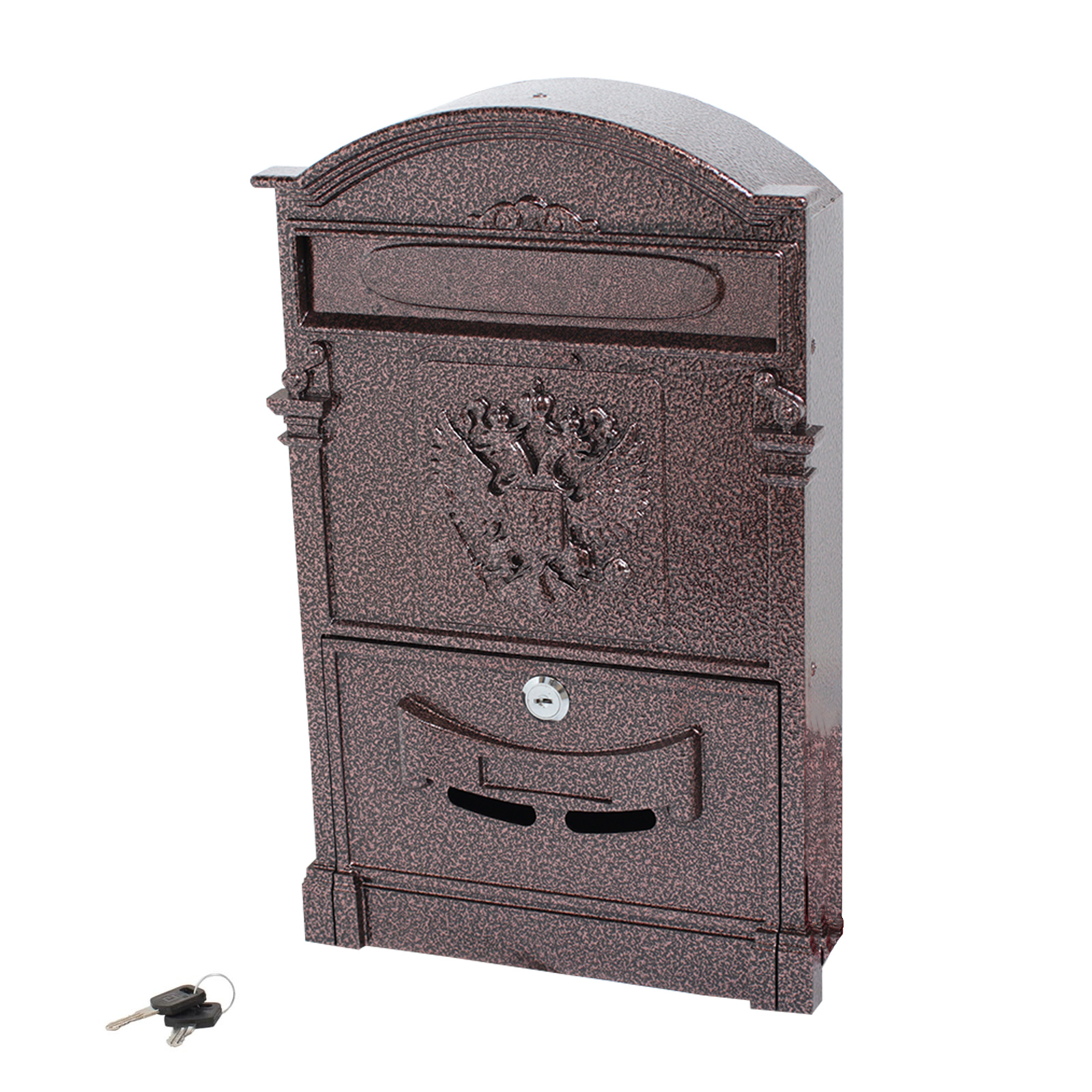 Ящик почтовый индивидуальный. Материал — сталь, алюминий. Цвет — медь. Размеры — 405*255*75мм. Замок с 2 ключами.