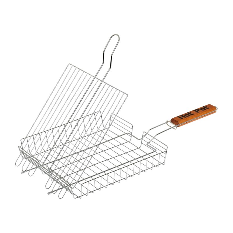 Предназначена для приготовления овощей или мяса. Возможно разместить крупные куски мяса. Фиксирующее кольцо-зажим исключает случайное раскрытие решетки. Деревянная ручка предохраняет от ожогов.