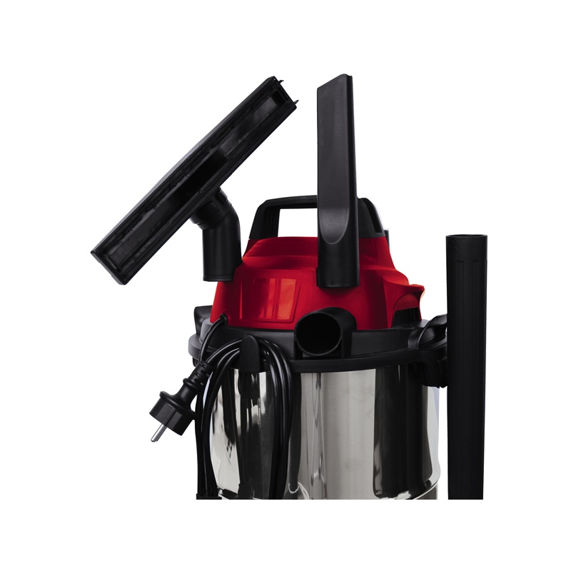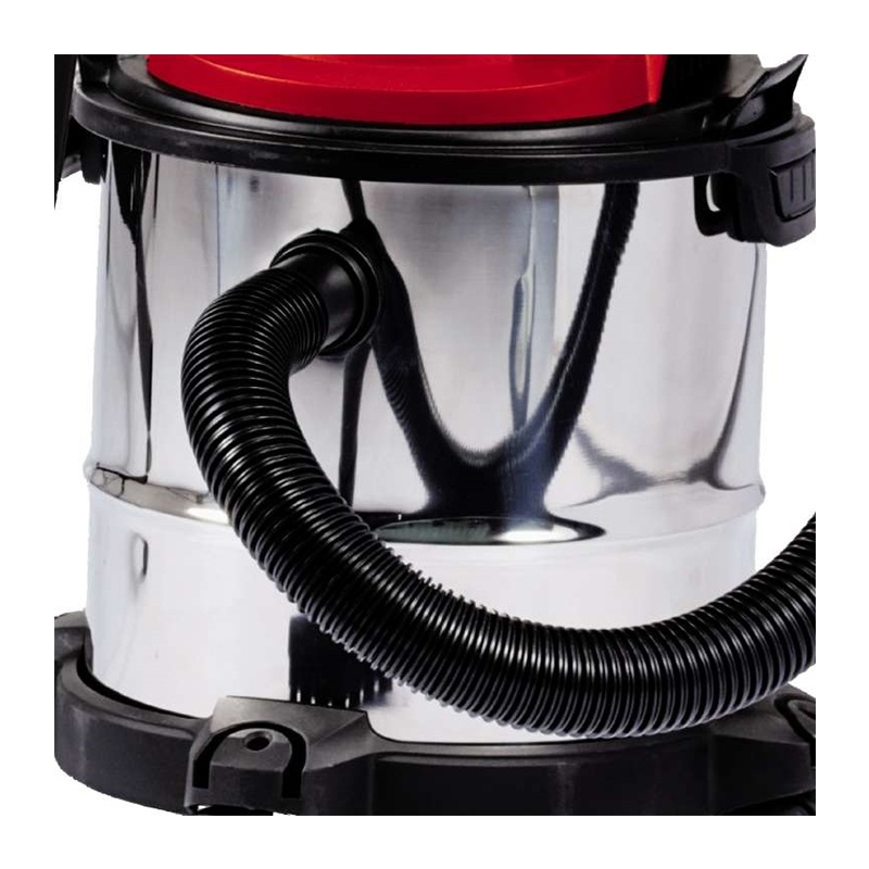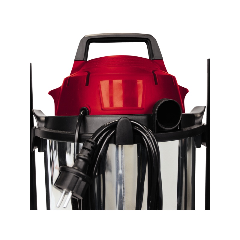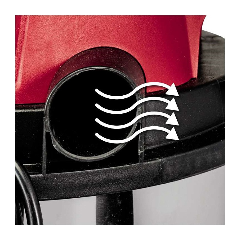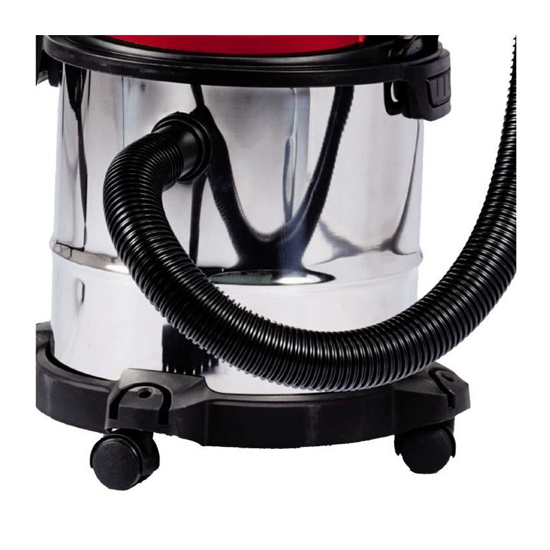 Предназначен для влажной и сухой уборки. Бак из нержавеющей стали. Функция выдува позволяет удалять из шланга застрявший мусор. Высокая производительность. Устойчивая конструкция. Рукоять для удобства транспортировки. Колеса для перемещения с места на место. Держатель кабеля на корпусе пылесоса.