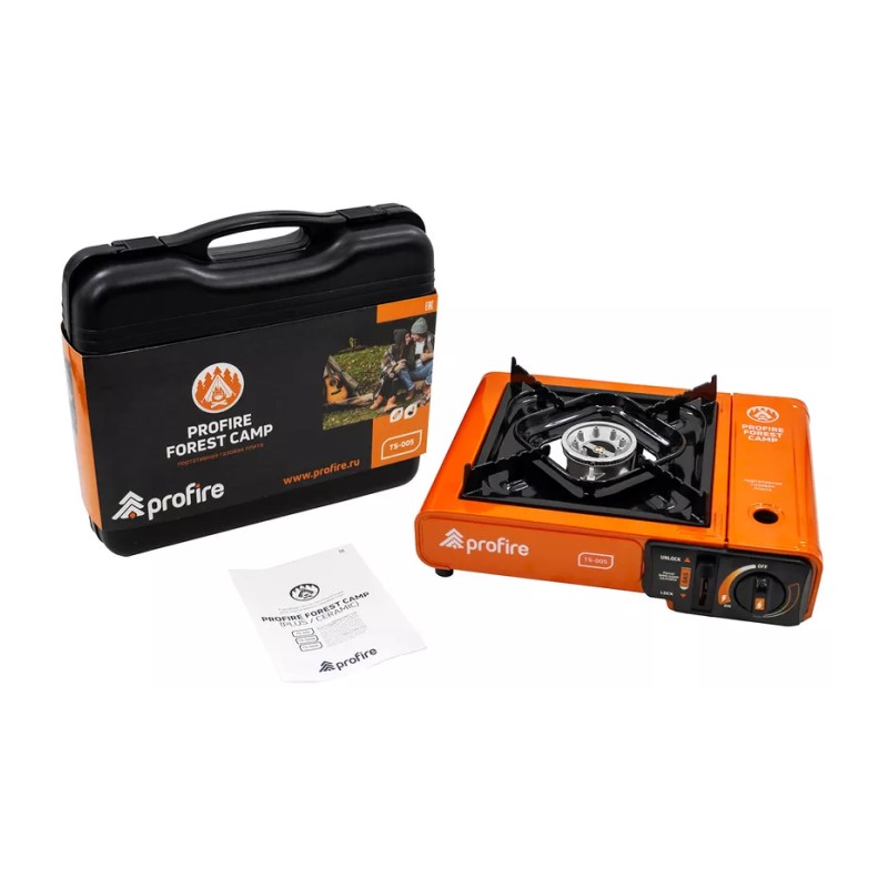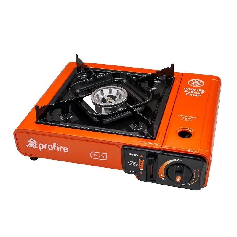 Profire Forest Camp (TS-005) предназначена для разогрева и приготовления пищи в условии удаленности от центрального источника газоснабжения (на пикниках, кемпингах, в частных домах и пр.). Портативная туристическая газовая плита работает от стандартного цангового одноразового баллона, который размещается внутри плиты.