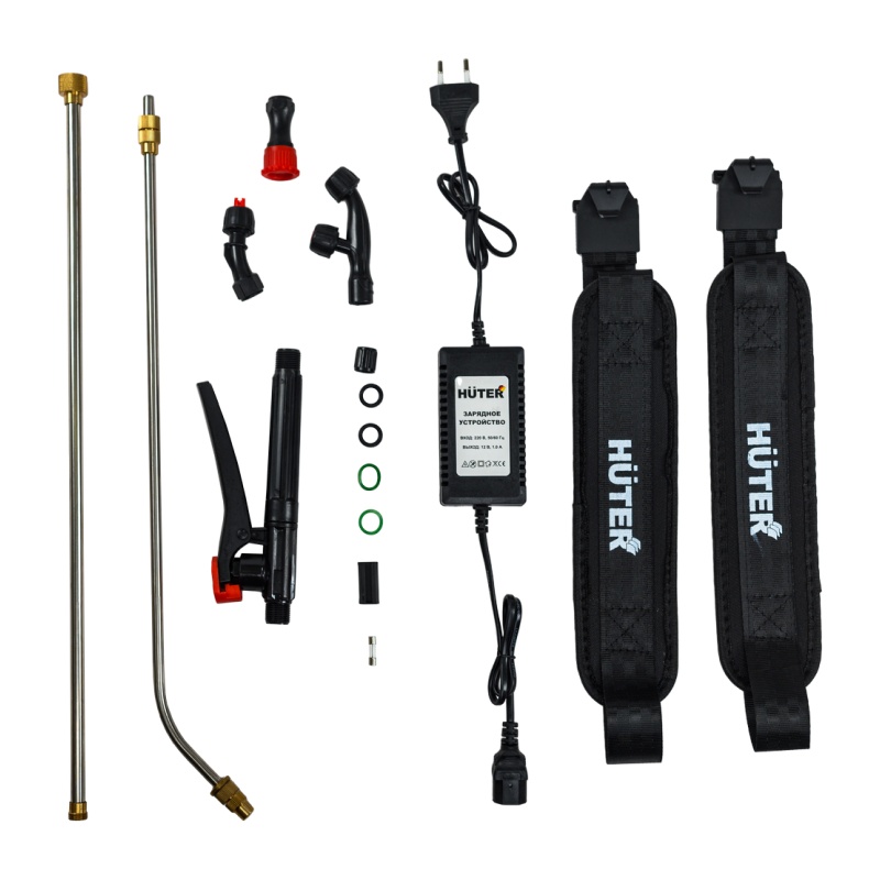 Опрыскиватель работает от аккумулятора напряжением 12 В и емкостью 8 А*ч и имеет световой индикатор для контроля уровня заряда. Зарядное устройство входит в комплект. Вместимость бака равна 16 л. В горловине установлен многоразовый фильтр. Он предотвращает попадание мусора в форсунки, обеспечивает качественное и равномерное распыление. Максимальная производительность составляет 5,5 л/мин. Для его контроля предусмотрен регулятор давления.