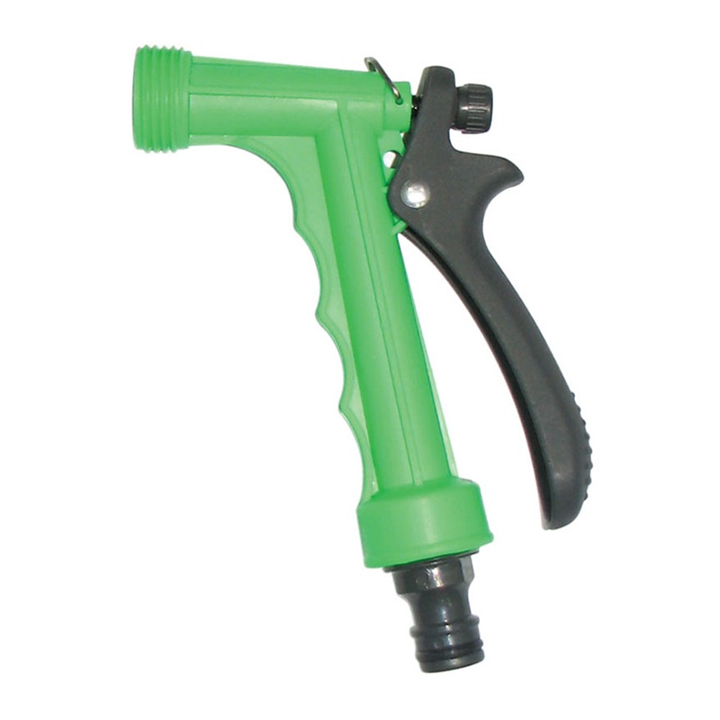 Предназначен для направленного полива растений. Подключается к поливочному шлангу с помощью соединителя. Имеется регулировка типа струи, курок с фиксатором для непрерывного полива.