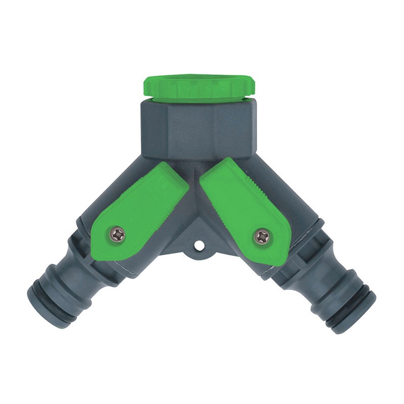 Предназначен для распределения подачи воды от одной линии (водопроводный кран, труба, поливочный шланг) на 2 канала. Имеется регулировка подачи воды для каждой линии.