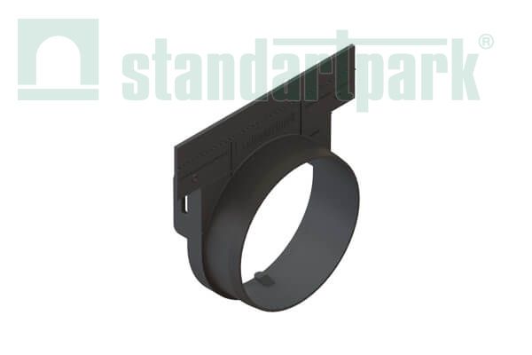 HTML:Заглушка с выпуском Basic для лотка водоотводного Basic и Drive DN100 h155 для подключения труб ф110. Устанавливается в конце линии лотков для отвода собранного стока в канализацию. Места стыков обязательно герметизируются.
