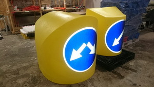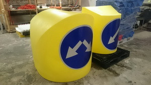 Буфер дорожный разделительный 1350x1350x1350 (Дорожная тумба) предназначен для разграничения потоков движения. Буфер устанавливается в местах повышенной опасности на дорогах: в начале разделительного ограждения, на островках безопасности, рядом с различными препятствиями. Благодаря яркой окраске и световозвращающей маске дорожного знака, изделие очень хорошо заметно на дороге и позволяет снизить аварийность. Для устойчивости изделие может заполняться водой или песком. Для этого в задней части изделия предусмотрено увеличенное загрузочное отверстие. Возможна комплектация маской дорожного знака из световозвращающей пленки типа А, Б или В по выбору Заказчика.
