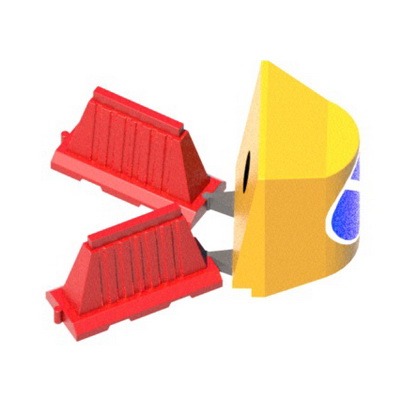 Поворотный соединитель между стандартными и вкладывающимися барьерами позволяет соединить вкладывающиеся и стандартные дорожные барьеры в цепь. Также соединитель может применяться для стыковки вкладывающихся барьеров к стандартным и осевым буферам. Присоединенные барьеры могут быть повернуты относительно центральной оси.