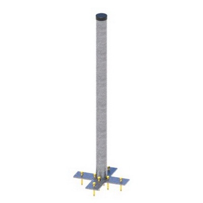 Металлическая оцинкованная стойка для установки защитной тумбы 800х200 на островок безопасности. Изделие крепится к дорожному полотну с помощью 8 анкерных болтов или шурупов-глухарей (не входят в стоимость). Комплектация крепежом — по заданию Заказчика.