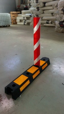 Cборно-разборная конструкция, устанавливаемая для разделения потоков движения. Элементы делинеаторов соединяются друг с другом, образуя цепь. Делинеаторы крепятся к дорожному полотну на анкерные болты. Делинеатор изготовлен из высококачественной резины, флажок изготавливается из специального пластика, с одной стороны имеется световозвращающая разметка. Флажок восстанавливает форму после наезда автомобиля.