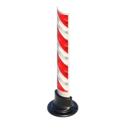 Делинеатор устанавливается на дорожное полотно для разделения потоков движения. Делинеаторы крепятся к дорожному полотну на анкерные болты. Делинеатор изготовлен из высококачественной резины, флажок изготавливается из специального пластика. Флажок восстанавливает форму после наезда автомобиля.