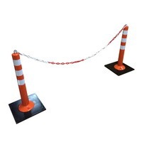 В комплект входит 25м красно-белой цепи с соединителями и 11 парковочных столбиков 750мм на резиновых или полимерпесчаных опорах. При установке шаг между столбами составит 2-2.5м. Комплект полностью готов к установке.