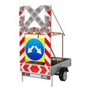 Комплектация: прицеп, стандартный знак 1.34.3, светодиодный знак 4.2.3, сверхяркая стрелка из светодиордных блоков 17шт, рама крепления, световозвращающая разметка, аккумулятор в ящике