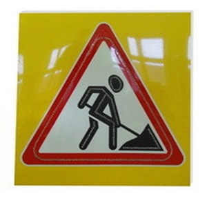 Светодиодный активный импульсный дорожный знак 1.25. Дорожные работы треугольник А=900мм на квадрате 900×900мм