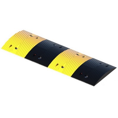 ИДН уменьшенной ширины для парковок. Искусственная дорожная неровность 350×1000мм («Лежачий полицейский») предназначено для ограничения скорости движения на дорогах. ИДН-350 изготавливаются из высокостойкой резины и собираются на дороге из отдельных сегметов: концевые сегменты черного цвета, серединные черно-желтые сегменты сегементы. Благодаря наличию световозвращающих элементов и контрастному цветовому исполнению изделие хорошо заметно на дороге в любое время суток.