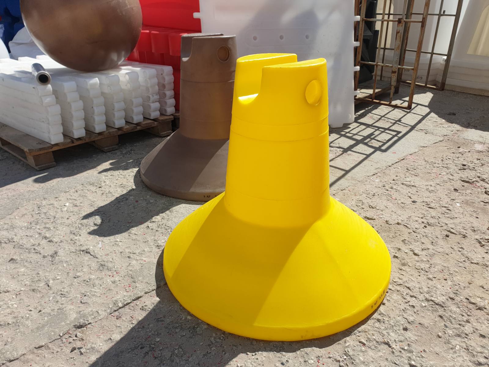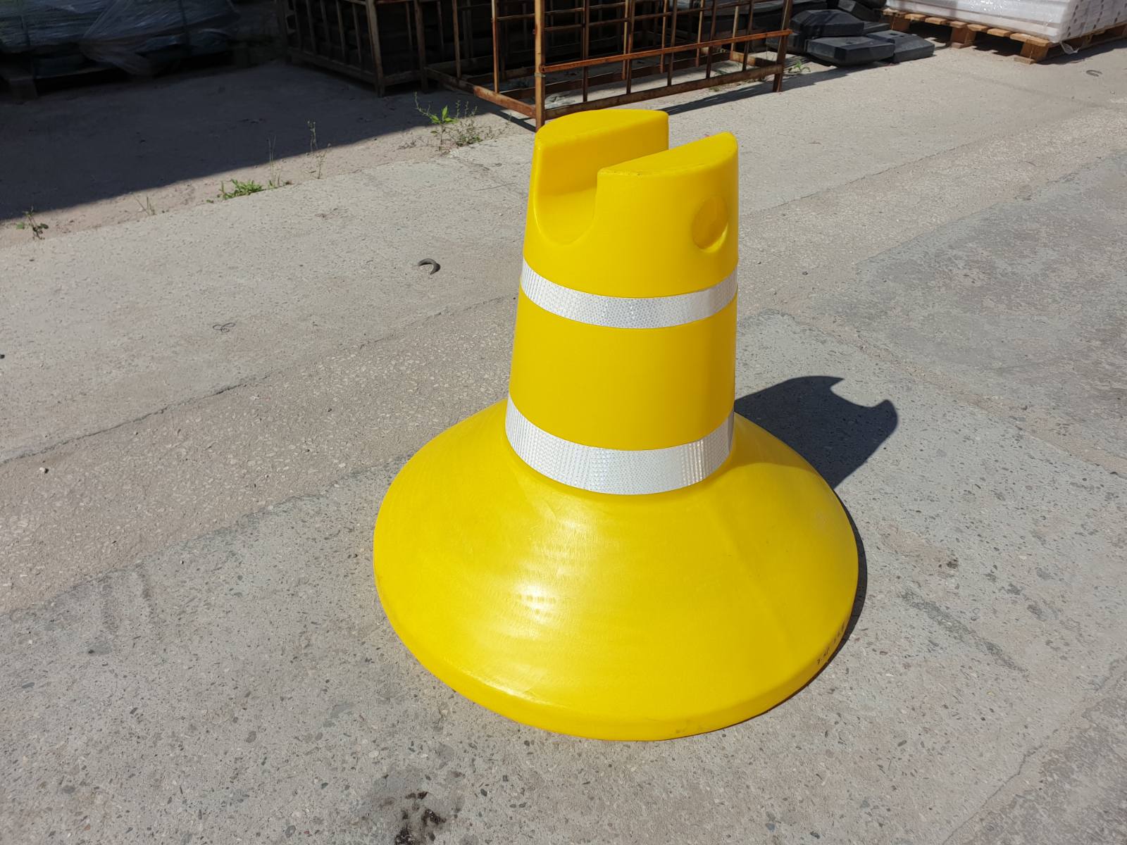 Кабельная опора предназначена для временного размещения высоковольтных кабелей на производственных объектах. Тело кабельной опоры изготовлено из высокопрочного пластика. Для лучшей заметности изделия в темное время суток и дополнительной безопасности, на тело кабельного конуса нанесены две полосы световозвращающей пленки. Кабельная опора может быть дополнительно утяжелена балластом через отверстие. В верхней части имеются ручки для переноски.