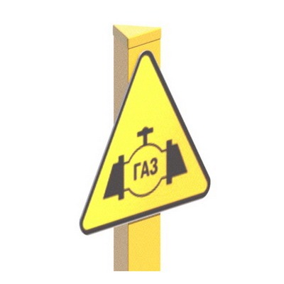 Опознавательный знак Осторожно Газопровод Согласно СТО ГАЗПРОМ 2-3.5-454-2010 «Правила эксплуатации магистральных газопроводов». Корпус столба знака представляет собой трехгранную опору и изготовлен их специализированного композитного материала толщиной 4мм. Сверху корпус столба знака закрыт крышкой желтого цвета. В нижней части столба имеется антивандальное анкерное устройство. На одной из граней смонтирована информационная табличка Осторожно газопровод 710х710х710мм.