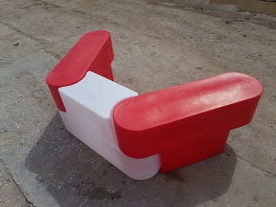 Картинг-барьер T-образной формы предназначен для создания мобильных дорожных ограждений. Изделие проектировалось в качестве ограждения для создания картинг-трасс, но оно также может использоваться как универсальное дорожное ограждение. В картинг барьере предусмотрено отверстие для заполнения изделия утяжелителем: резиновой крошкой, водой или песком. Картинг-барьеры соединяются за счет надежного замка, который позволяет предотвратить разрыв цепи при ударе. Замок позволяет делать изгиб трассы под нужным углом.