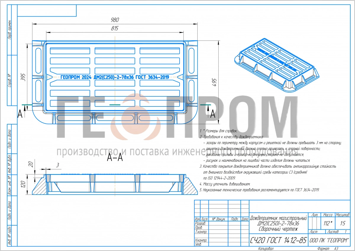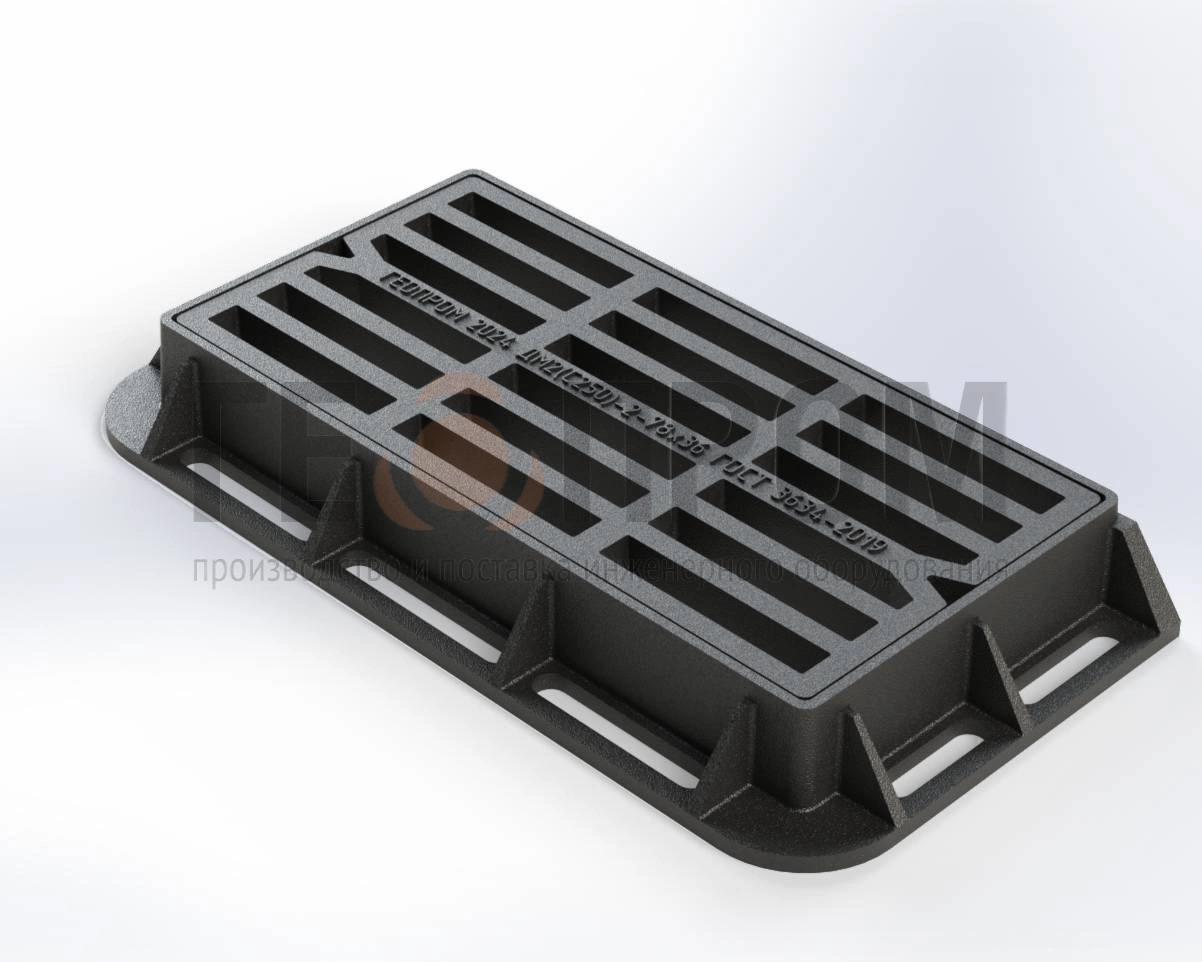 Дождеприемник ДМ2(С250)-2-78х36 состоит из корпуса и усиленной решетки. Это позволяет устанавливать данные дождеприемники на проезжей части с высокой интенсивностью движения.