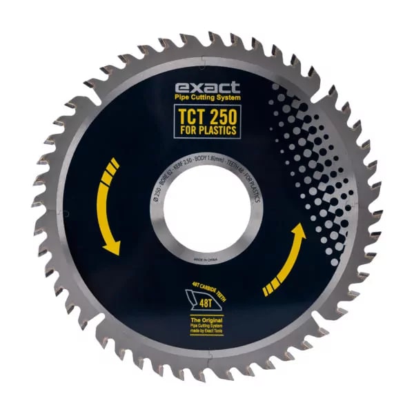 Диаметр 250мм, посадка 62мм, 48 зубьев. Диск карбидо-вольфрамового типа. Подходит для резки пластиковых труб труборезом Р1000.