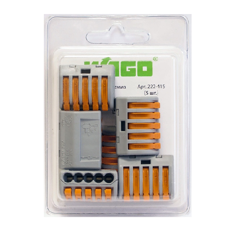 Клемма с рычажком WAGO 222-415 без пасты, 5 проводов 0,08-2,5 мм2 (5 шт.)