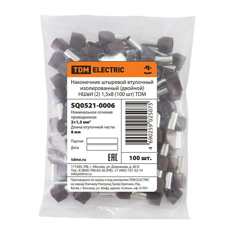 Предназначен для оконцевания многопроволочных проводов посредством опрессовки и последующей фиксации их в клемме. Изолированный. Двойной. Наконечник состоит из медной луженой токопроводящей трубки и полипропиленовой изолирующей юбки.
