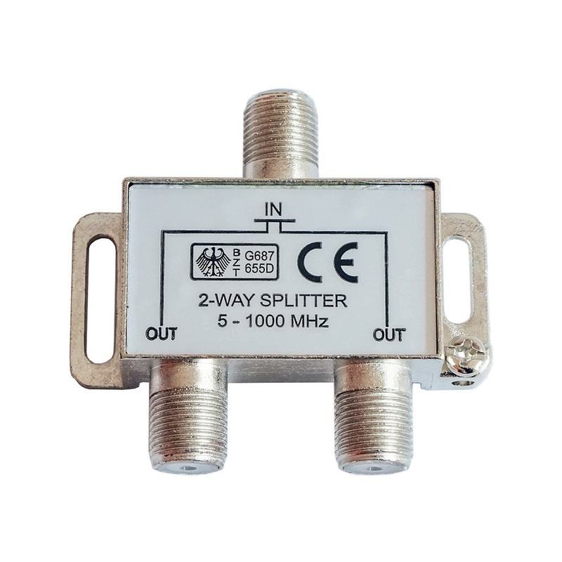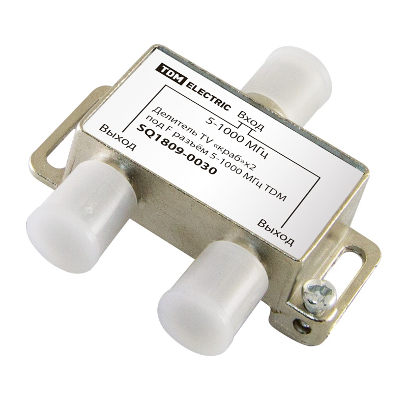 Предназначен для разделения сигнала одного телевизионного кабеля от антенны на несколько равных частей — к нескольким телевизорам. Делитель имеет один вход и два выхода под F-разъем.