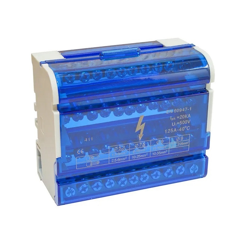 Применяется в щитовом оборудовании для подсоединения нулевых рабочих (N) и нулевых защитных проводов (РЕ). Устанавливается на DIN-рейку.