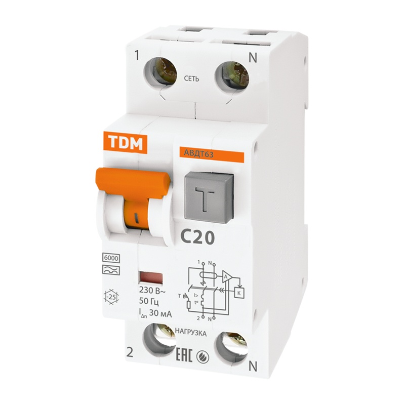 Предназначен для проведения тока в нормальном режиме, отключение тока при коротких замыканиях или перегрузке, а также отключение тока при прикосновении человека к токоведущим частям электроустановок или протекании дифференциального тока утечки на землю. Аппарат занимает два стандартных модуля в щитке (36 мм). Наличие двойного одновременного подключения шины и проводника значительно расширяет диапазон возможных схемных решений. Имеет высокую предельную отключающую способность (6000 А).