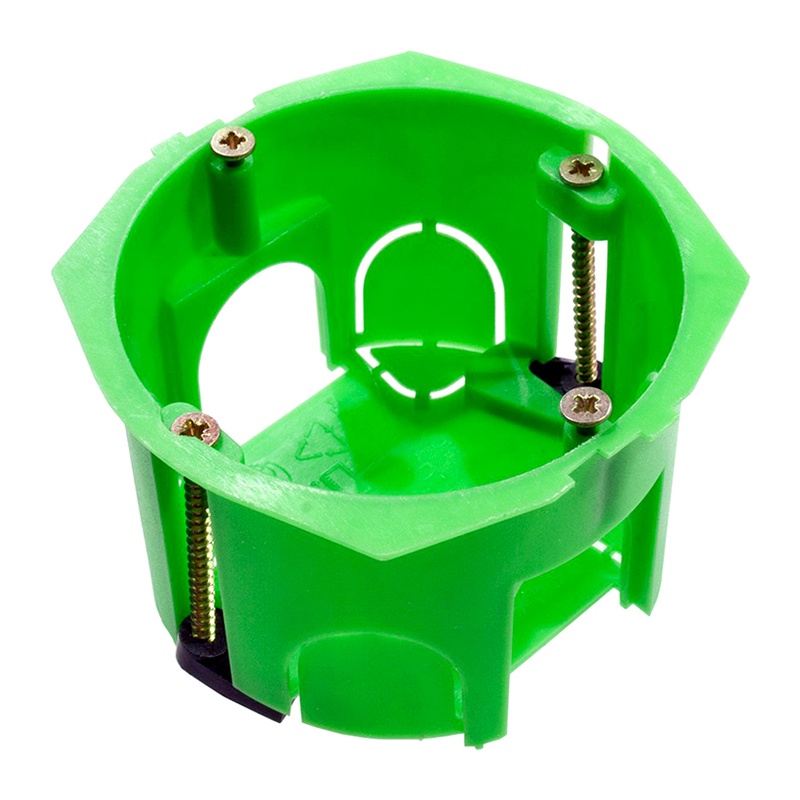 Предназначена для размещения кабелей, их соединений, отводов, разводок и т. п. внутри помещений и снаружи при проведении электрической сети. Для гипсокартоновых стен. С переходником. Пластиковые лапки. Не поддерживает горение. Огнестойкость в 850°С не позволяет распространяться огню, даже при воспламенении проводки. Не содержит галогенов. Комплектуется саморезами.