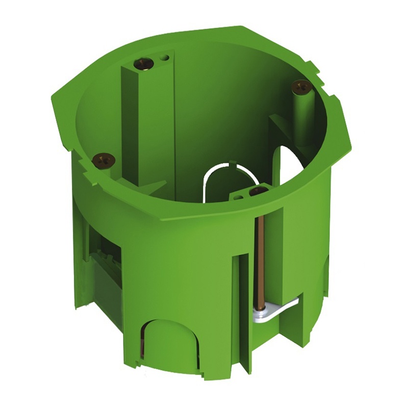 Предназначена для размещения кабелей, их соединений, отводов, разводок и т. п. внутри помещений и снаружи при проведении электрической сети. Для гипсокартоновых стен. С переходником. Металлические лапки. Не поддерживает горение. Комплектуется саморезами.